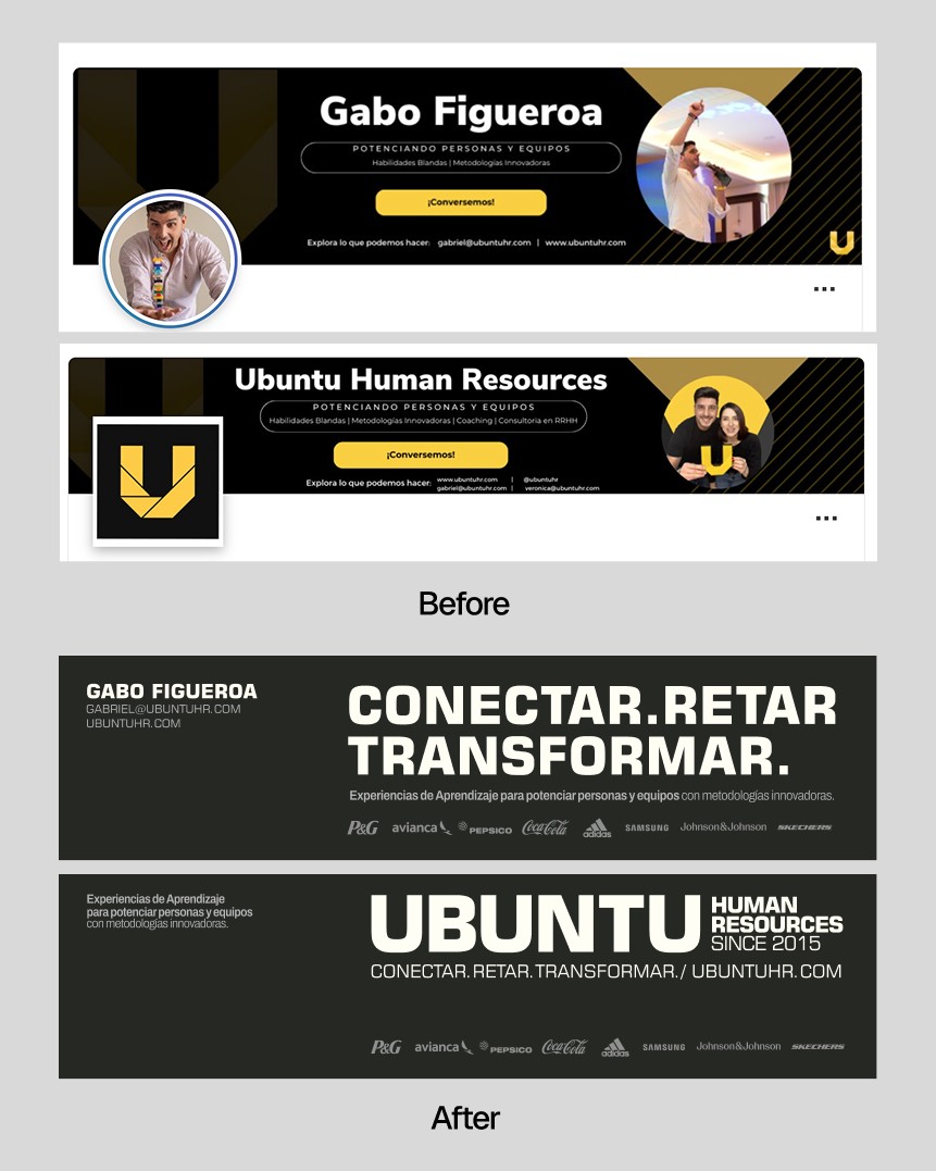 Ubuntu HR was founded by Gabo Figueroa in 2015 to bring a more human and strategic approach to talent development. Over time, the brand’s communication became dense and hard to navigate, a common challenge for experts with so much knowledge and solutions to share.